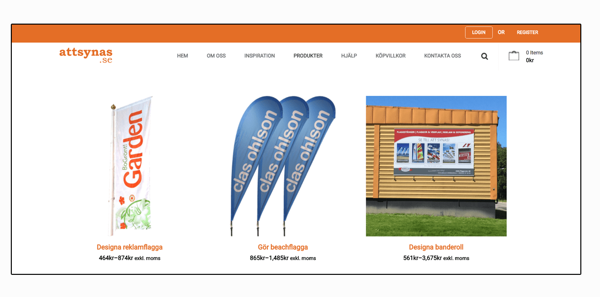 På vår sida, AttSynas.se, så kan ni beställa och skapa era egna flaggor. Vi har såklart även kringutrustning för att erbjuda en komplett produkt när det kommer till flaggor och reklam.